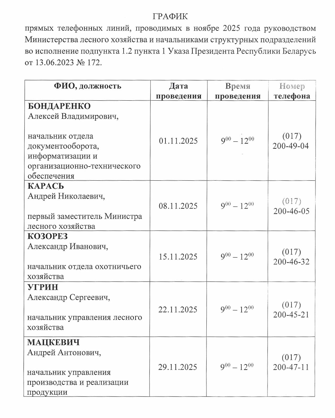График прямых телефонных линий в ноябре